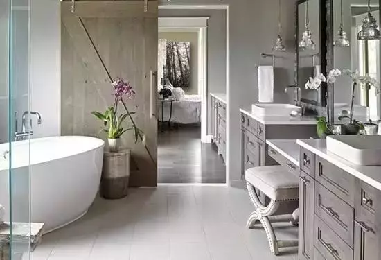 卫生间一般推荐用石材较好,这样可以把角角落落都处理得很平整,不必为打扫卫生时遇到死角而烦恼。而在家具的选择,高品质的木质产品给人生活感觉和品质就比较精致舒适,高品质的家具甚至可以传承,所以不能将就。
